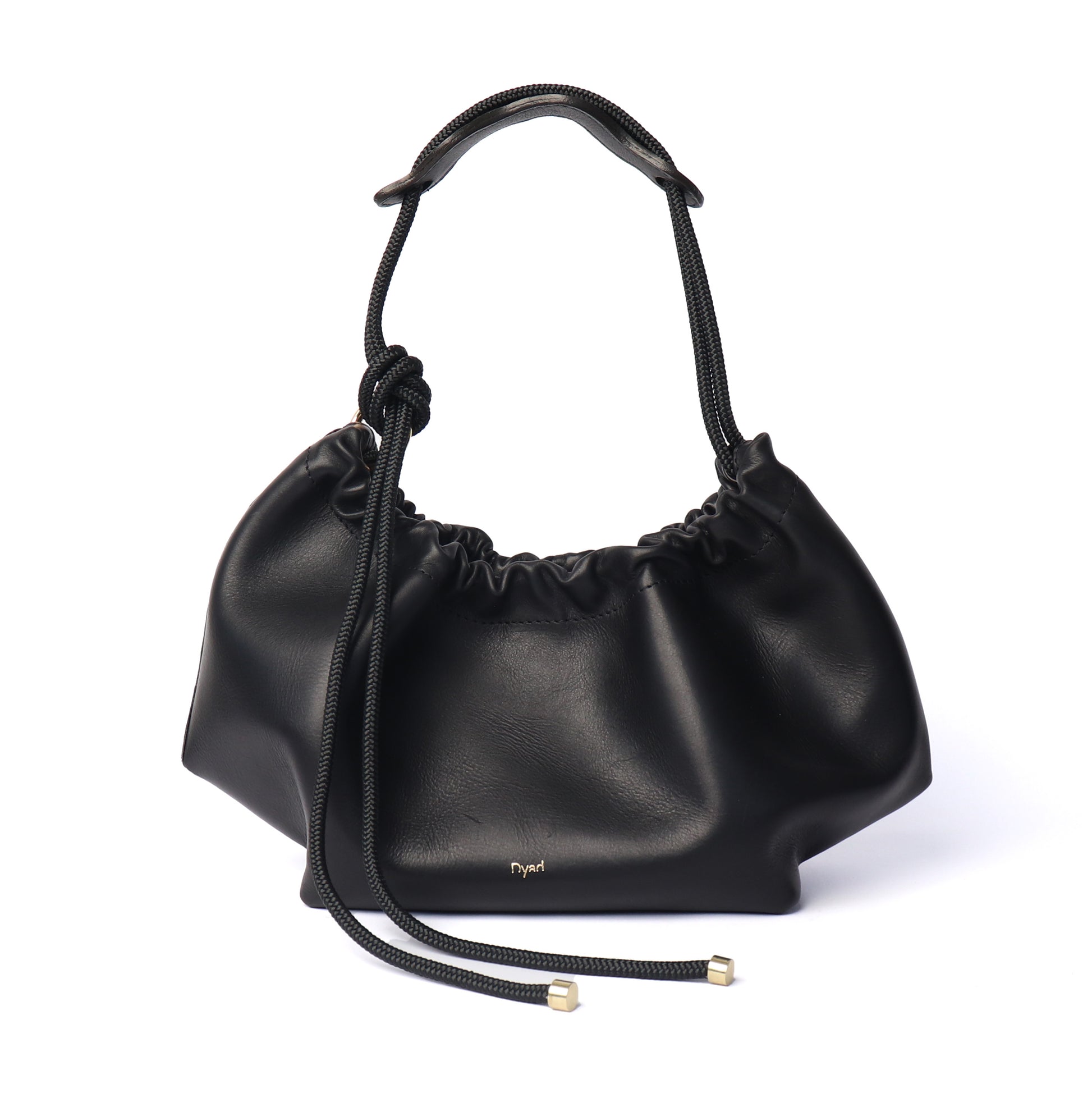 An exploration of form and movement. This medium sized shoulder bag, rendered in supple South African cow leather, captures the balance between structure and fluidity. Gentle ruching gathers along the top, while an asymmetrical knotted strap creates a sculptural silhouette that shifts effortlessly with the wearer. The magnetic closure opens to a spacious interior, accompanied by a detachable zip pouch for refined organisation.